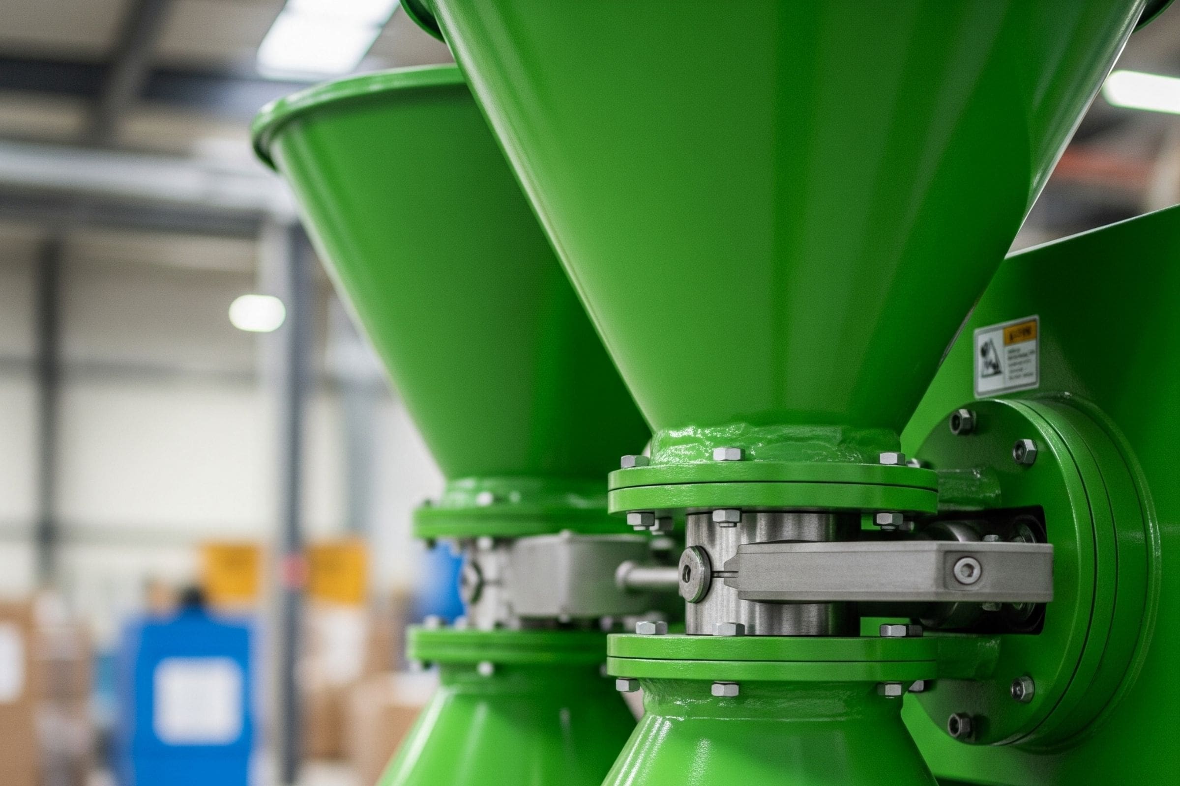 This system is employed after the grinding process and consists of two conical-shaped drums to homogenize the material. The conical drum geometry is designed to ensure even mixing of the material. Integrated with the vacuum transfer system, our mixer operates with minimal material loss, offering high efficiency in obtaining homogeneous material. This mixer is particularly suitable for free-flowing powders, which can be uniformly blended within a defined number of revolutions (measured in time or RPM), independent of the selected mixing speed. The rotational speed of the mixer is adjustable, allowing customization based on material characteristics and desired mixing intensity.