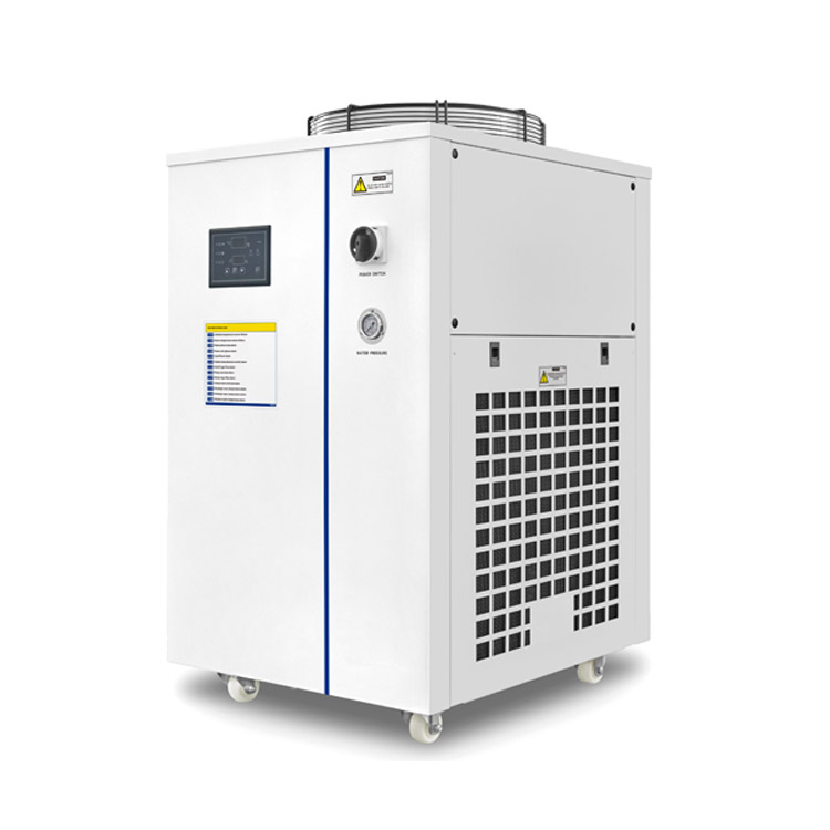 With its wheeled design, the unit can be easily transported and positioned wherever needed within the facility, allowing for quick and simple installation. Since the unit is equipped with an integrated water pump, water tank, and piping system, only basic inlet and outlet hose connections are required to start operation. Additionally, as the system requires only a one-time water filling during initial setup, risks of scaling and contamination are significantly reduced. Due to its compact dimensions, the chiller occupies minimal floor space and can be conveniently placed close to the machinery it serves, enhancing both space utilization and cooling efficiency.