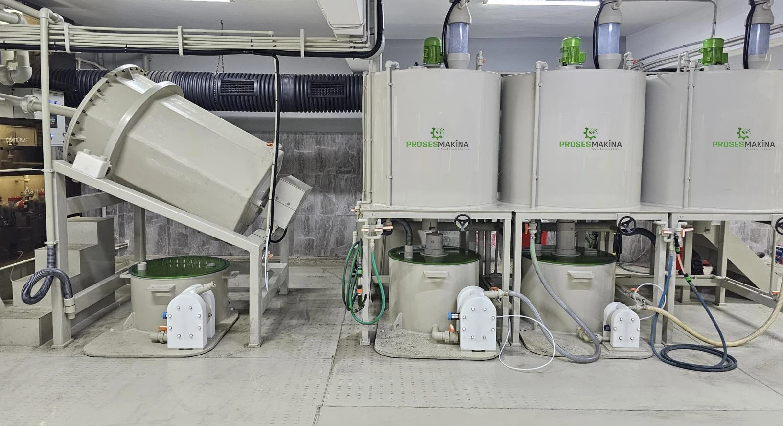 In our system, in order not to lose the precious metals dissolved during the process, there is a storage tank for recovery.