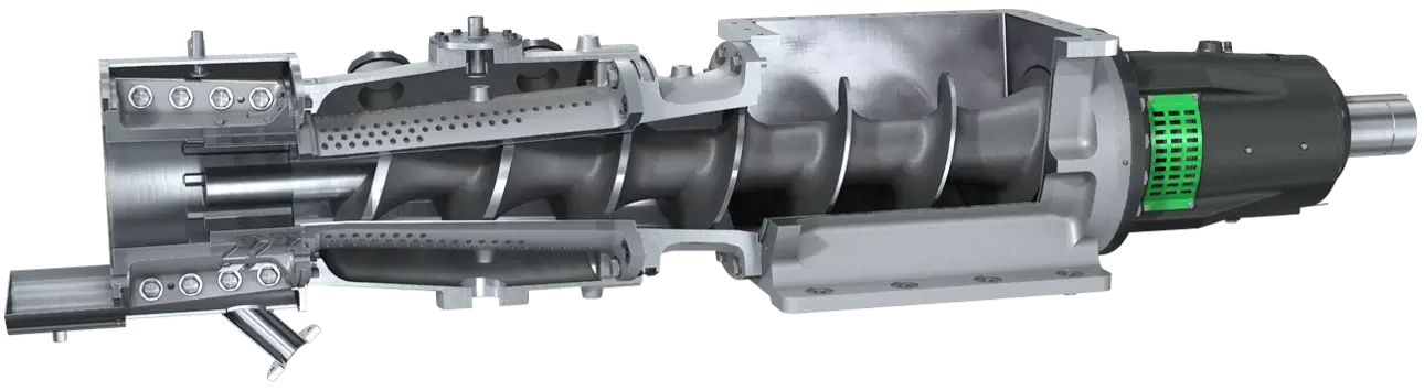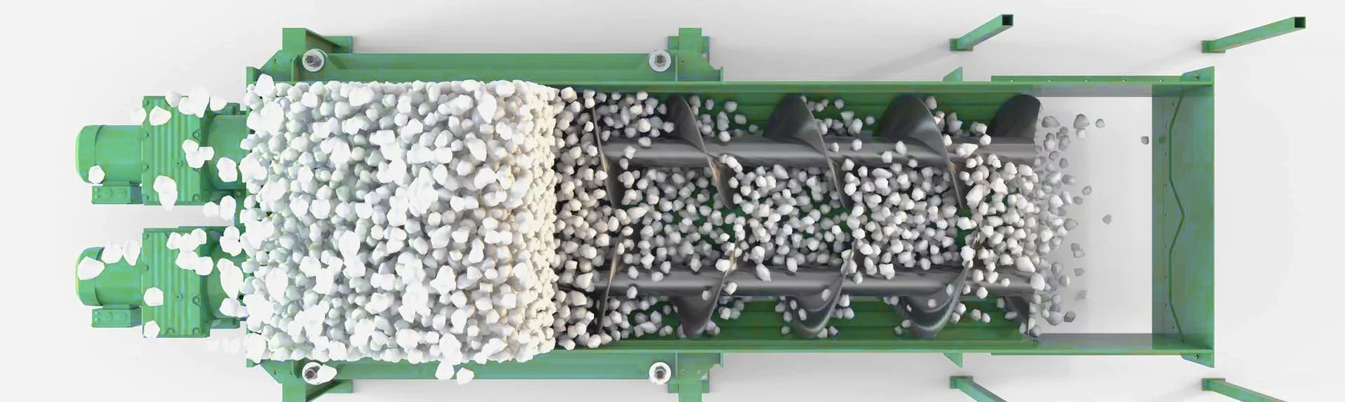 The screw feeder efficiently meters bulk solid materials ensuring performance of the plant. It consists of a helical screw that rotates inside a confinement channel. As the screw turns, it moves materials from the input end to the output end by pushing them along the trough. This process minimizes variations in flow rate and reduces the risk of blockages, even when dealing with abrasive materials.