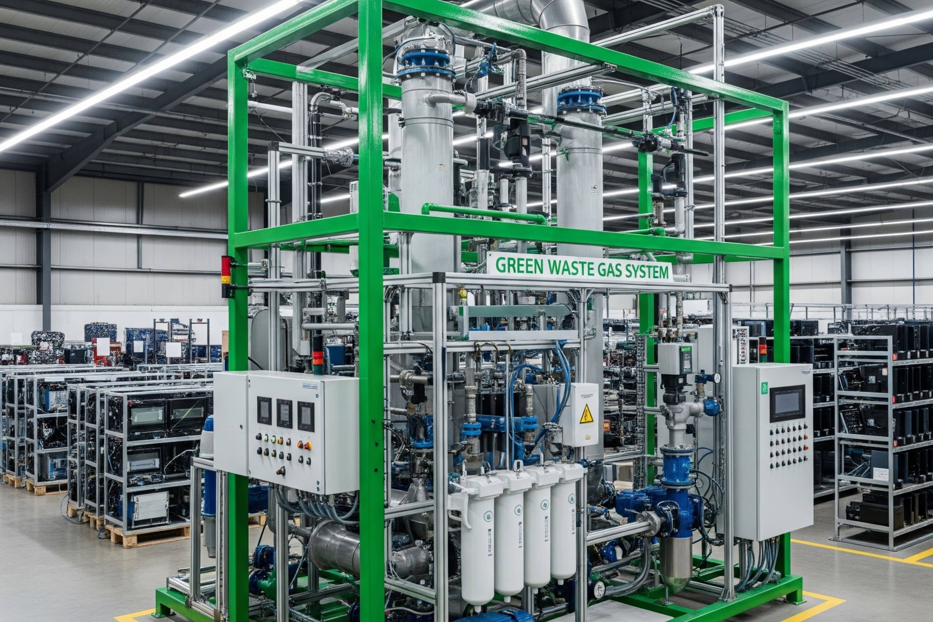 Waste gas streams can be treated in the direction of a waste management system in order to minimize pollution.